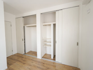 大容量クローゼットでかさばる季節の衣類もレジャー用品もスッキリ収納。キャビネット活用でドレッサー代わりにもなります。